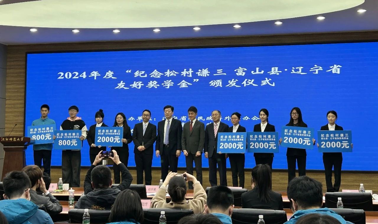 3月27日,2024年度“纪念松村谦三 富山县·辽宁省友好奖学金”颁发仪式在沈阳师范大学举行,我校外国语学院日语专业8名同学荣获此项奖学金!